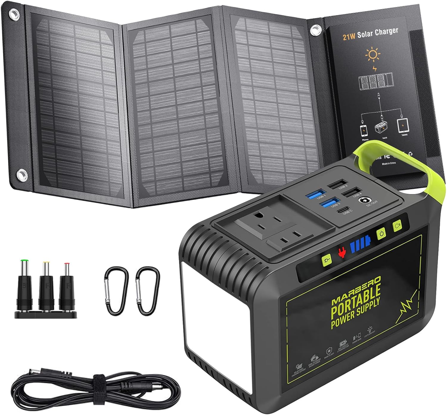 MARBERO 88Wh Portable Power Station 24000mAh Camping Solar Generator with 21W Solar Panel for CPAP Home Camping Emergency Backup